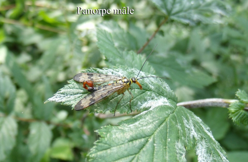 La panorpe s’appelle également la mouche scorpion à cause de l’abdomen du mâle qui, recourbé vers le haut, se termine par un aiguillon qui n’est en fait utilisé que pour la copulation.